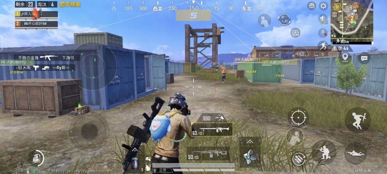 4.在和平精英游戏内开启辅助触控模式后,即可在游戏过程中使用绑定的操作来激活对应的手势。